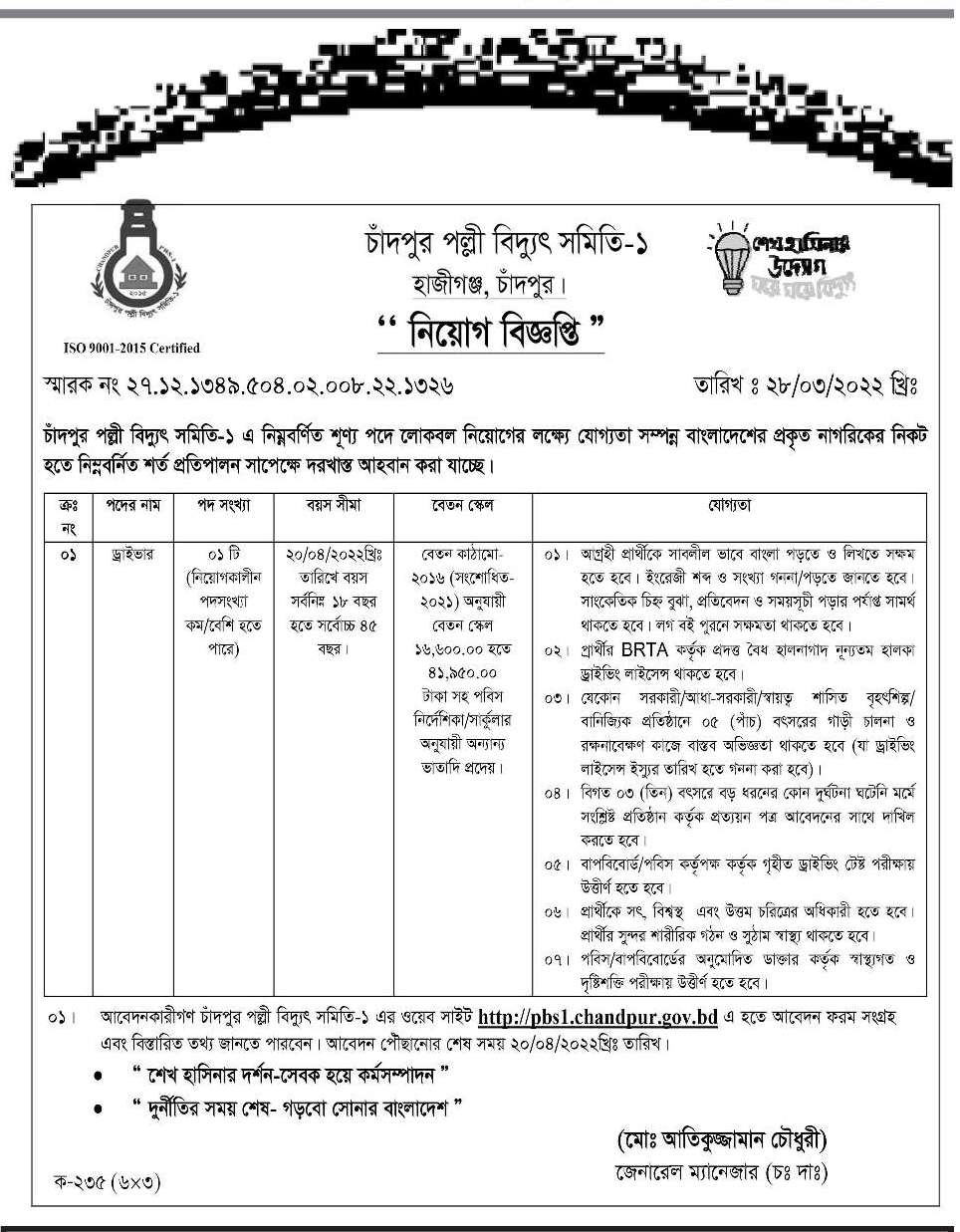 Chadpur Palli Bidyut Samity Job Circular 2022